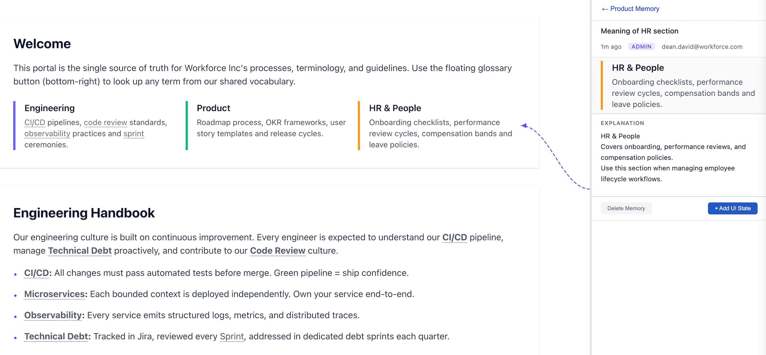 Not in docs nobody opens. Not in Slack threads nobody finds. Not in someone's memory. But directly inside your product — at the exact moment someone needs clarity.